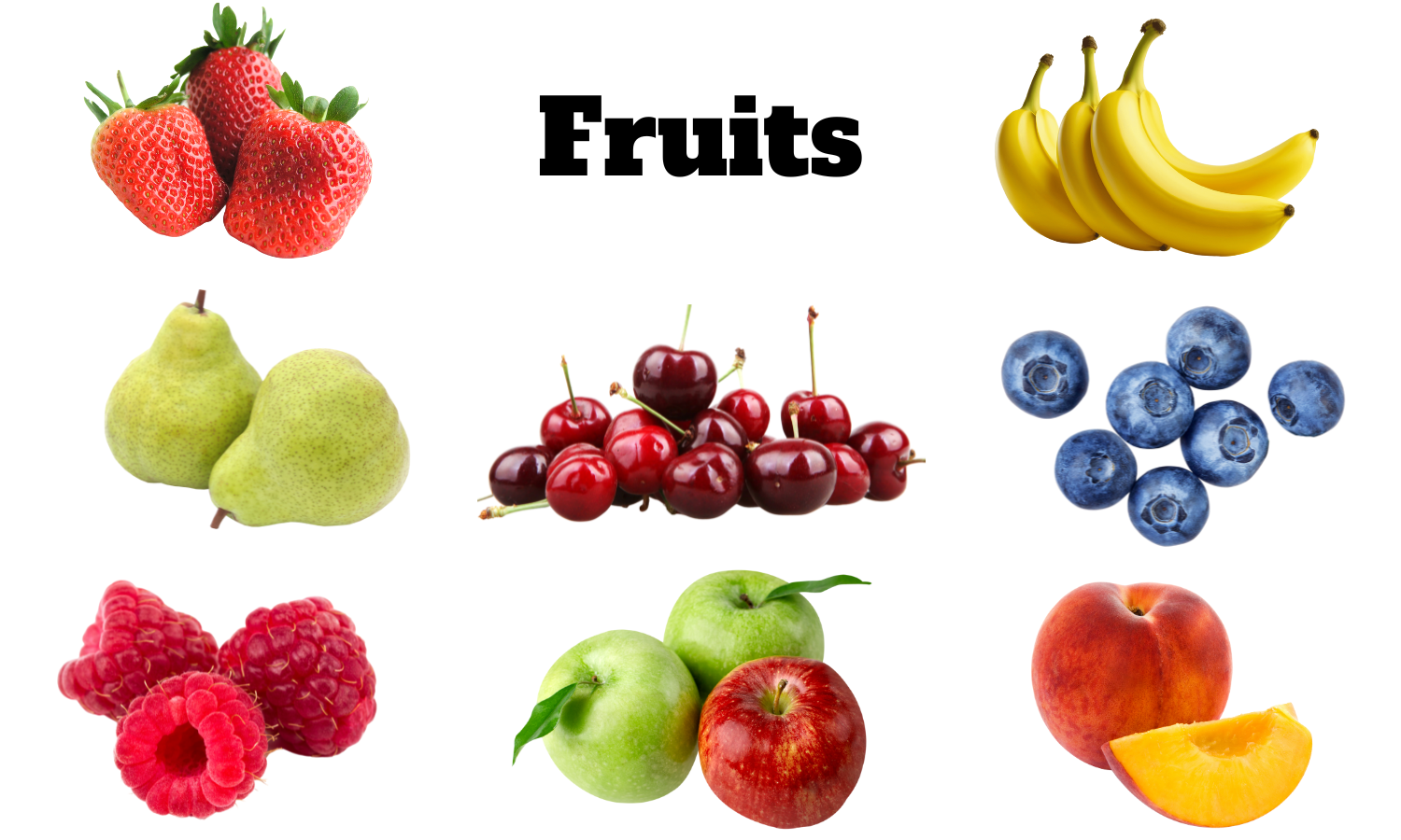 π Strawberries π Cherries π« Blueberries π Raspberries π Peaches π Apples π Bananas
