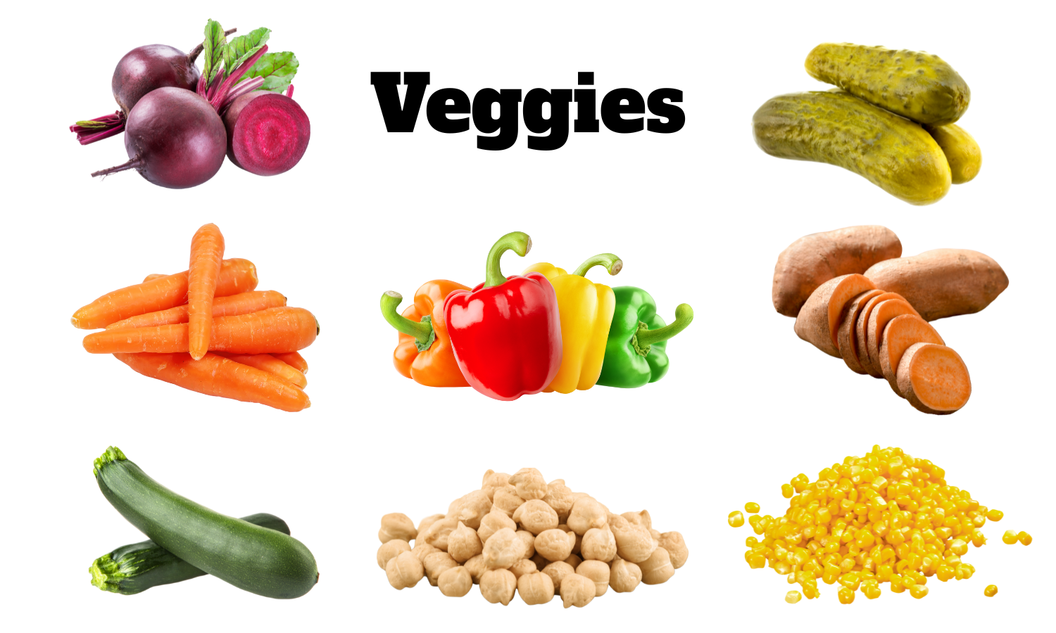 π₯ Carrots π Sweet Potatoes π½ Corn π₯ Zucchini π§ Chickpeas π₯¬ Dill Pickles π΄ Beets